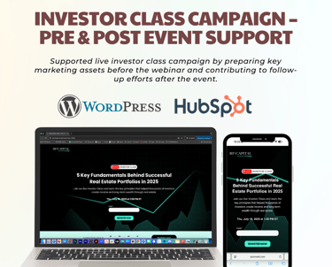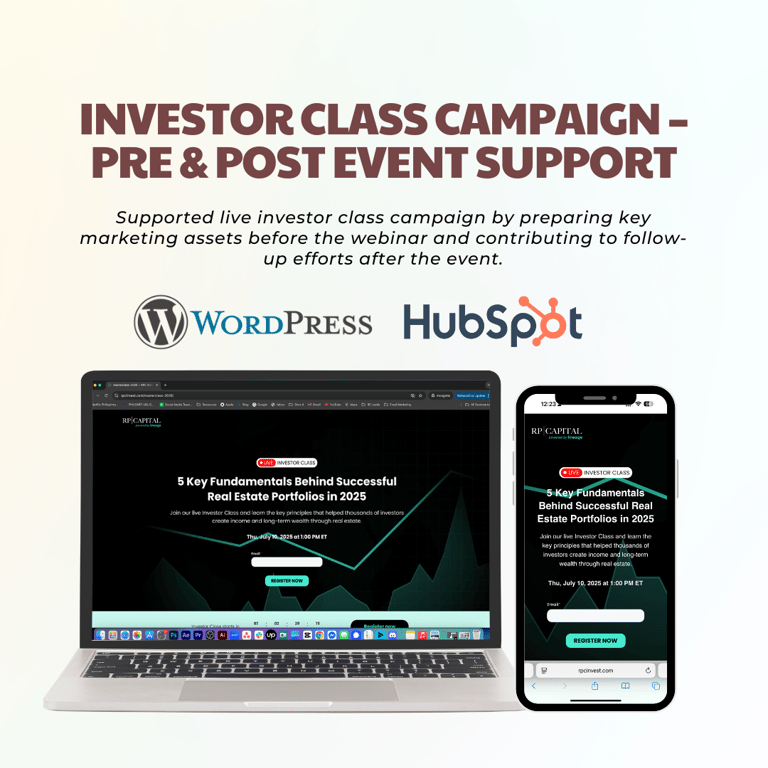Supported live investor class campaign by preparing key marketing assets before the July 10 webinar and contributing to follow-up efforts after the event. The goal was to maximize registrations, ensure a smooth attendee experience, and extend the campaign’s impact through post-event content.