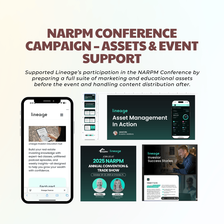 Supported Lineage’s participation in the NARPM (National Association of Residential Property Managers) Conference by preparing a full suite of marketing and educational assets before the event and handling content distribution after. The campaign aimed to position Lineage as an educational leader for property managers, build brand authority, and extend visibility beyond the event itself.