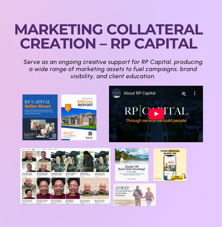 Provide ongoing design support for RP Capital, delivering marketing collateral for campaigns, events, and brand initiatives.