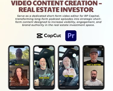Provide ongoing video editing support for RP Capital’s marketing team by repurposing podcast episodes into short-form content for social platforms.